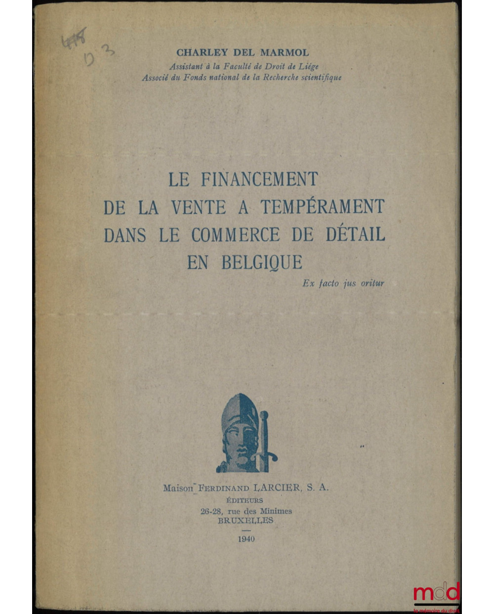 LE FINANCEMENT DE LA VENTE À TEMPÉRAMENT DANS LE COMMERCE DE DÉTAIL EN BELGIQUE, Ex facto jus oritur
