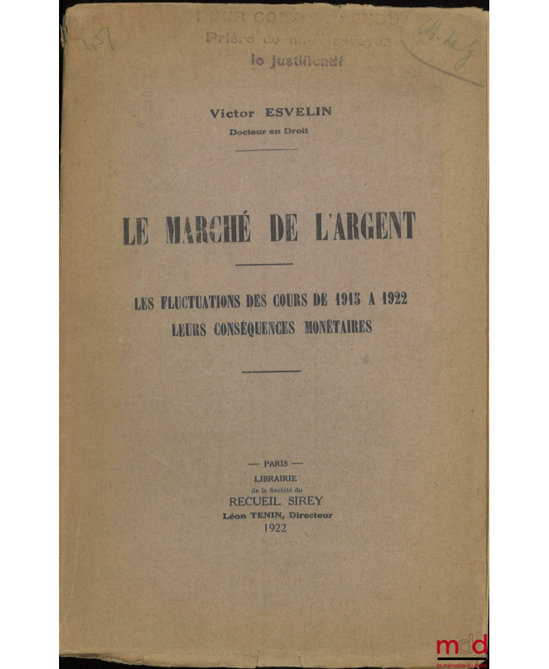 Description : in-8, débr., non coupé, graphiques annexés, (couv. fanée, 4e de couv. partielt détachée, marques de bibl.), int. frais, 219 p.