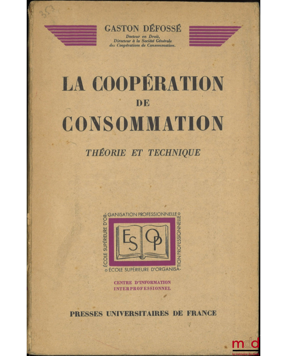LA COOPÉRATION DE CONSOMMATION, Théorie et technique, Préface de Gaston Prache