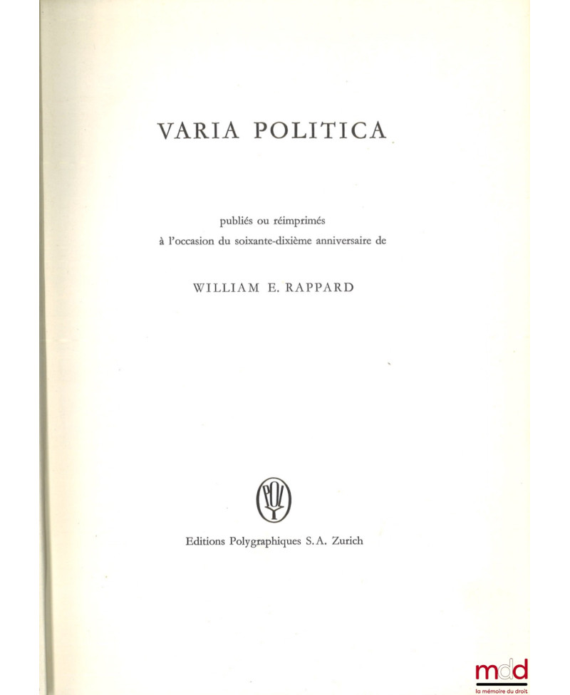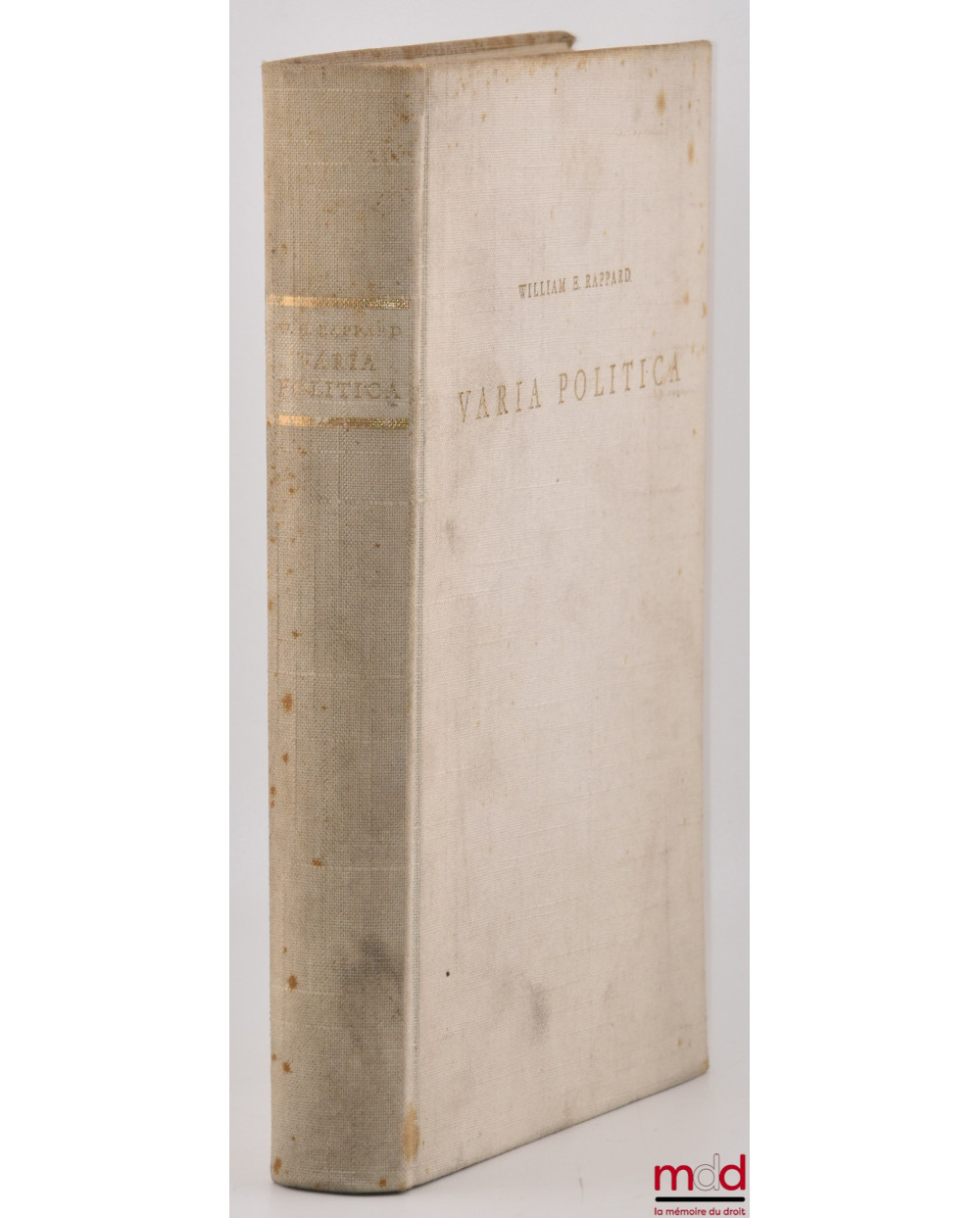 VARIA POLITICA PUBLIÉS OU RÉIMPRIMÉS À L’OCCASION DU SOIXANTE-DIXIÈME ANNIVERSAIRE DE WILLIAM E. RAPPARD