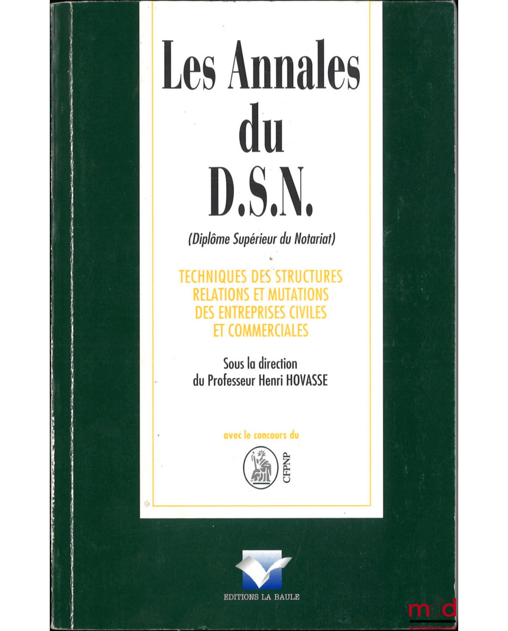 LES ANNALES DU D. S. N. (Diplôme Supérieur du Notariat), Techniques des structures, relations et mutations des entreprises civiles et commerciales, dir. Henri Hovasse
