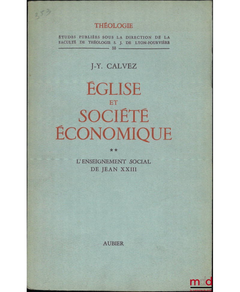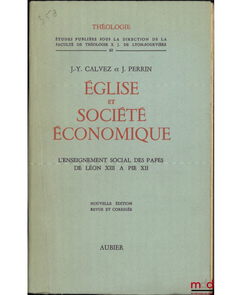 ÉGLISE ET SOCIÉTÉ ÉCONOMIQUE, t. I : L’enseignement social des papes de Léon XIII à Pie XII ; t. II : L’enseignement social de Jean XXIII, 2e éd. revue et corrigée, coll. Théologie, Études publiées sous la dir. de la Faculté de Théologie S. J. de Lyon-Fourvière