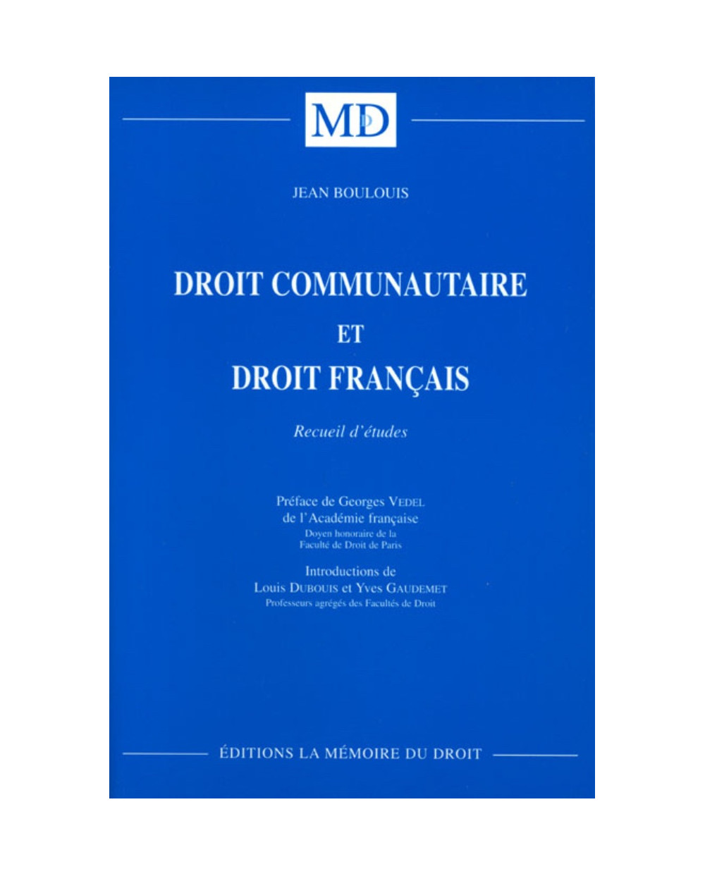 DROIT COMMUNAUTAIRE ET DROIT FRANÇAIS Recueil d’études, Préface de Georges VEDEL