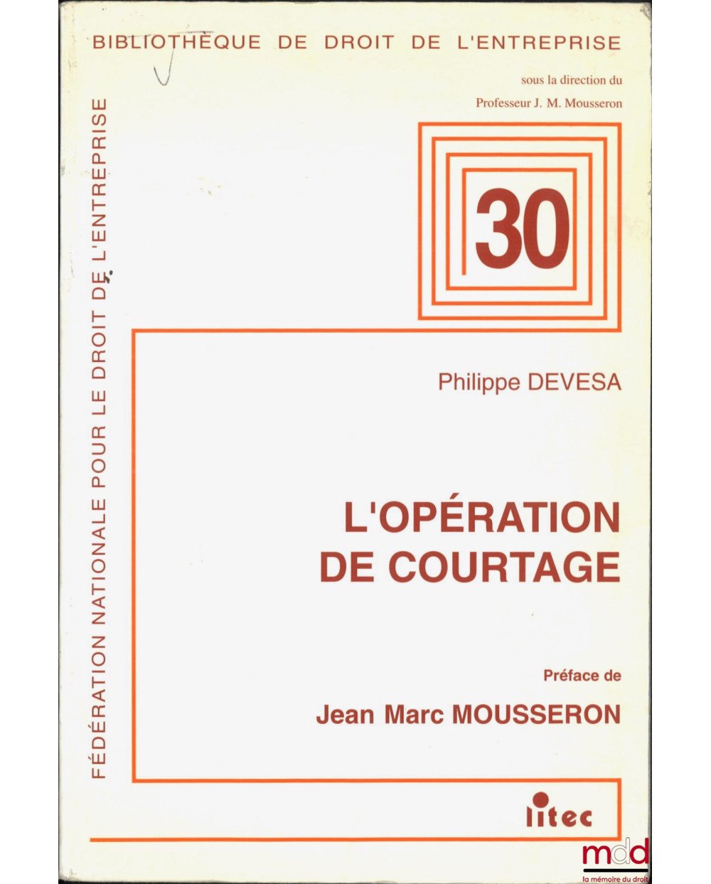 L’OPÉRATION DE COURTAGE, Préface de Jean-Marc Mousseron, Bibl. de droit de l’entreprise n° 30, Fondation nationale pour le droit de l’entreprise