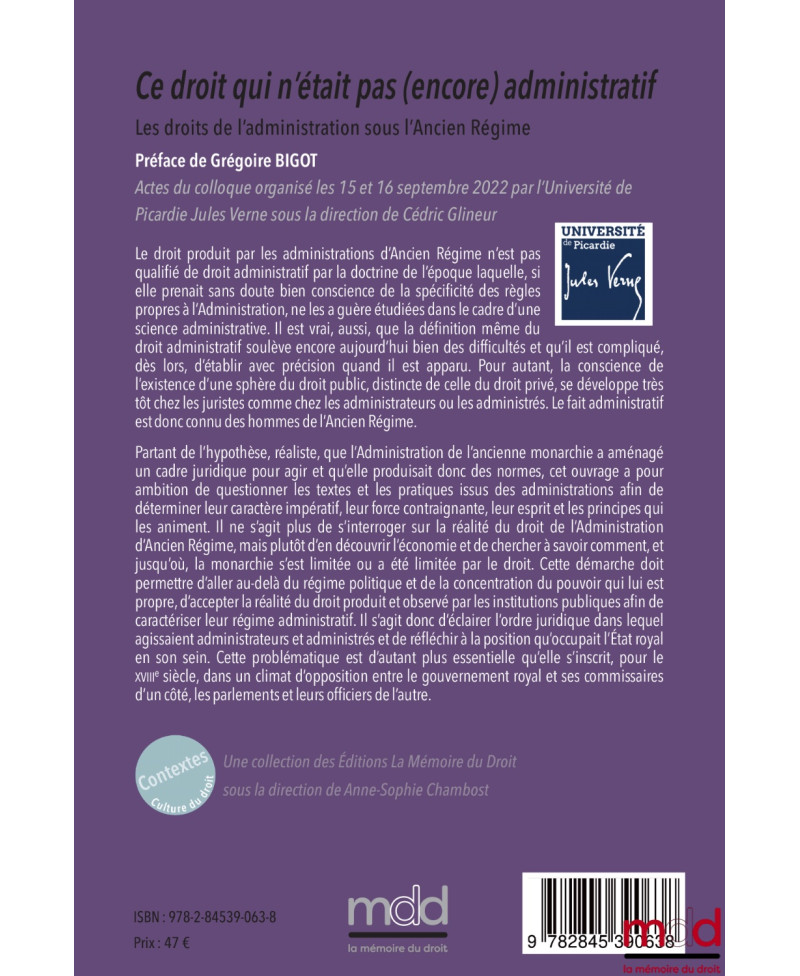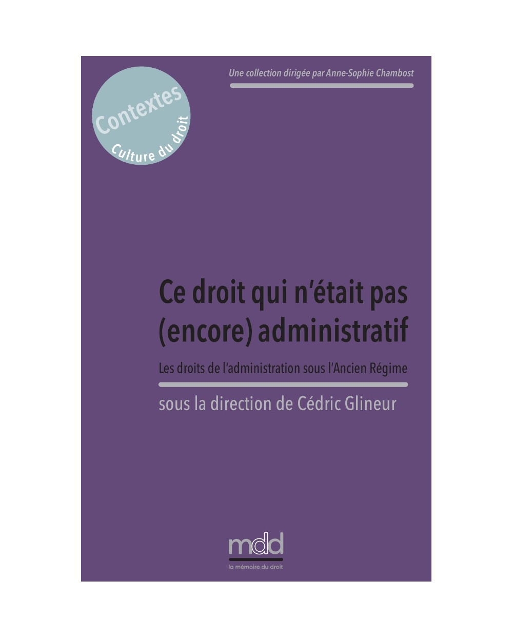 CE DROIT QUI N’ÉTAIT PAS (ENCORE) ADMINISTRATIF.Les droits de l’administration sous l’Ancien Régime,Sous la direction de Cédric GLINEUR,Avant-propos de Grégoire BIGOT,coll. Contextes. Culture du droit, t. II