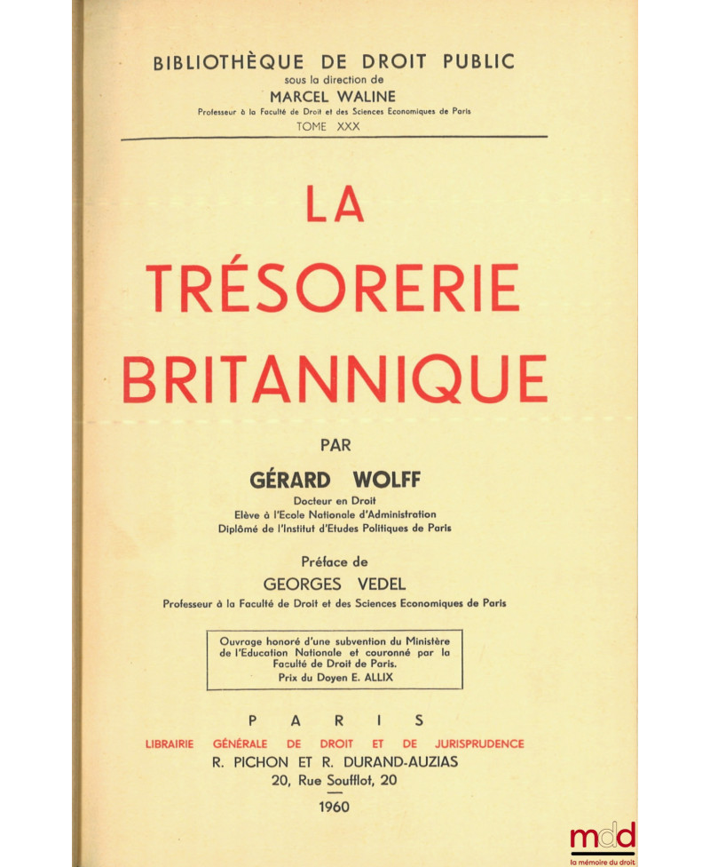 LA TRÉSORERIE BRITANNIQUE, Préface de Georges Vedel, Bibl. de droit public, t. XXX