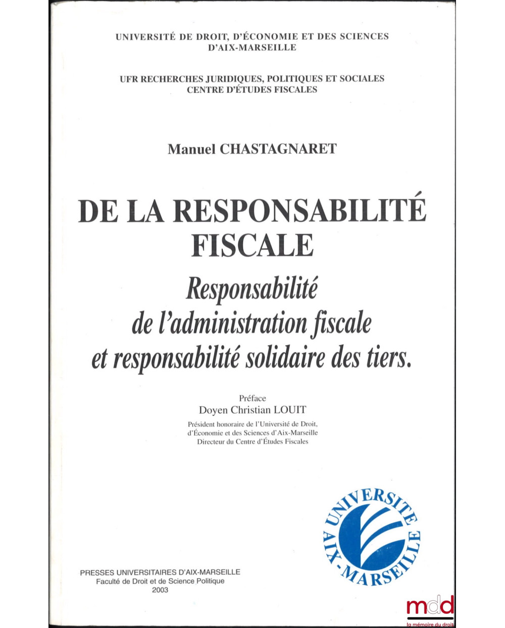 DE LA RESPONSABILITÉ FISCALE, Responsabilité de l’administration fiscale et responsabilité solidaire des tiers, Préface Christian Louit
