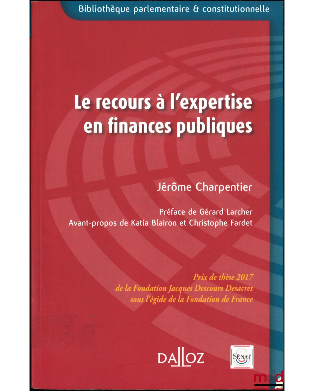 LE RECOURS À L’EXPERTISE EN FINANCES PUBLIQUES, Préface de Gérard Larcher, Avant-propos de Katia Blairon et Christophe Fardet, Thèse sous la dir. de Katia Blairon et Christophe Fardet, coll. Bibl. parlementaire et constitutionnelle