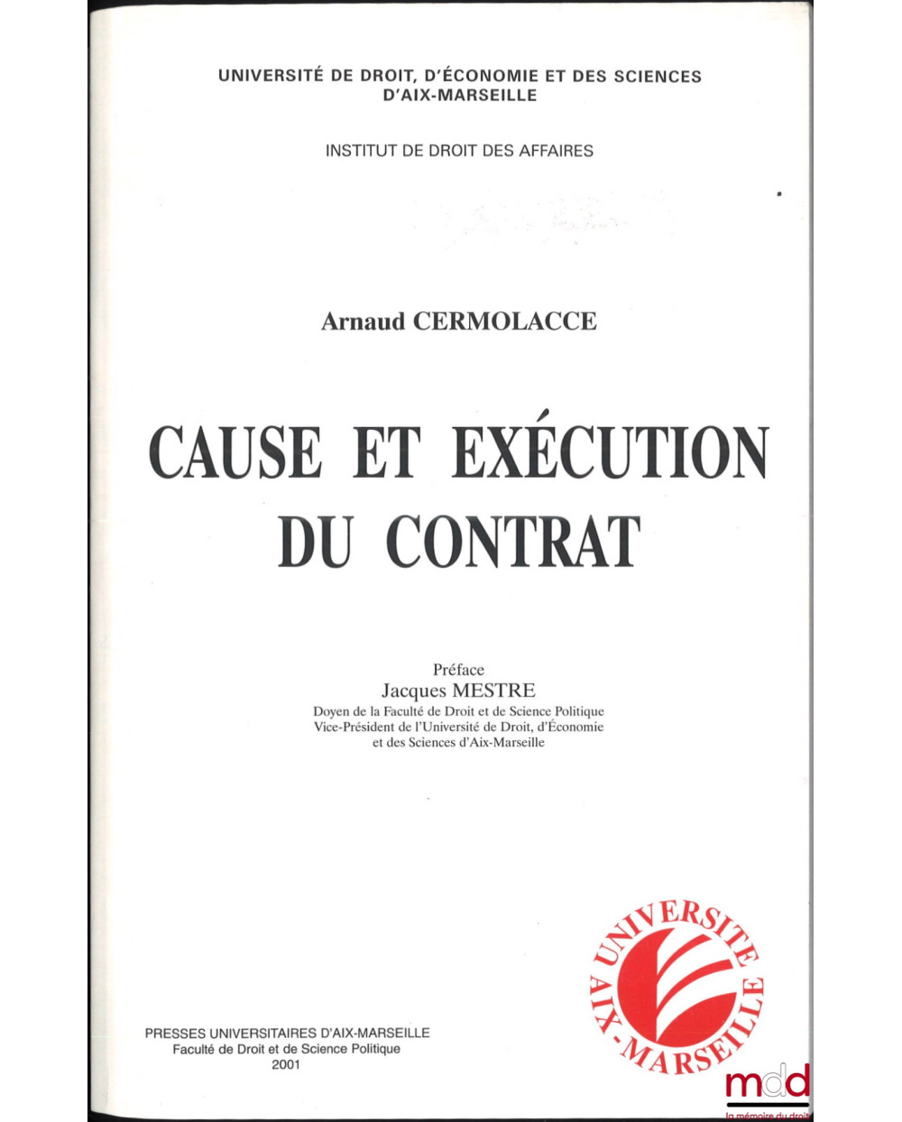 CAUSE ET EXÉCUTION DU CONTRAT, Préface de Jacques Mestre, Univ. de droit, d’économie et de sciences d’Aix-Marseille, Institut de Droit des Affaires