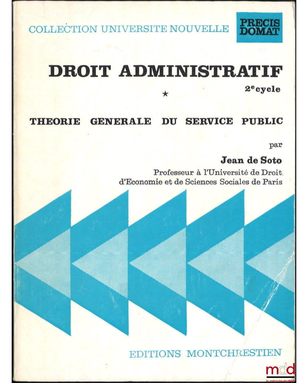 DROIT ADMINISTRATIF 2e cycle, Théorie générale du Service public, t. I [seul], coll. Université Nouvelle, Précis Domat