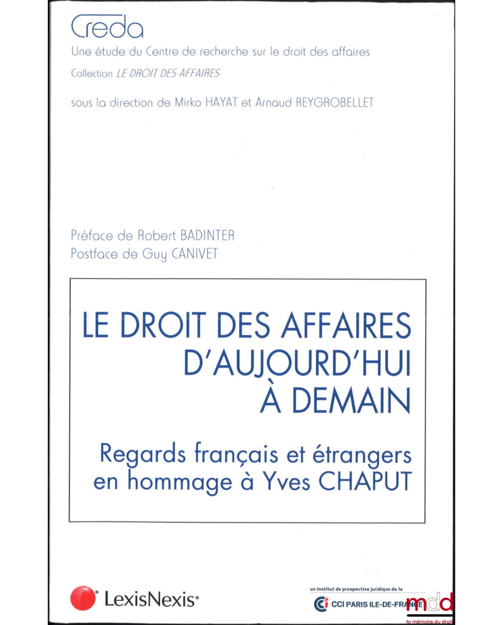 LE DROIT DES AFFAIRES D’AUJOURD’HUI À DEMAIN, Regards français et étrangers en hommage à Yves Chaput, Préface de Robert Badinter, Postface de Guy Canivet, coll. Le droit des affaires, Étude du contre de recherche sur le droit des affaires, sous la dir. de Mirko Hayat et Arnaud Reygrobellet