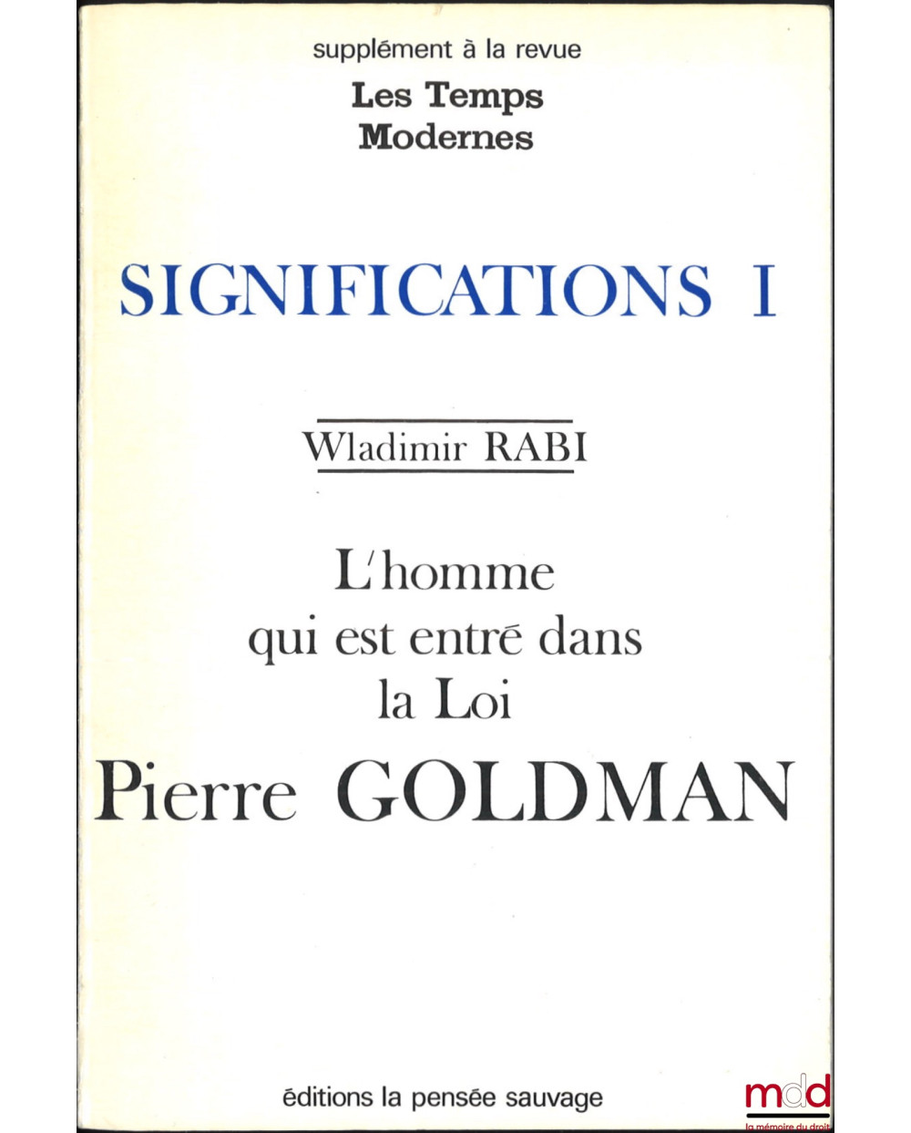 L’HOMME QUI EST ENTRÉ DANS LA LOI : PIERRE GOLDMAN, coll. Significations, t. I, Supplément à la revue Les Temps Modernes