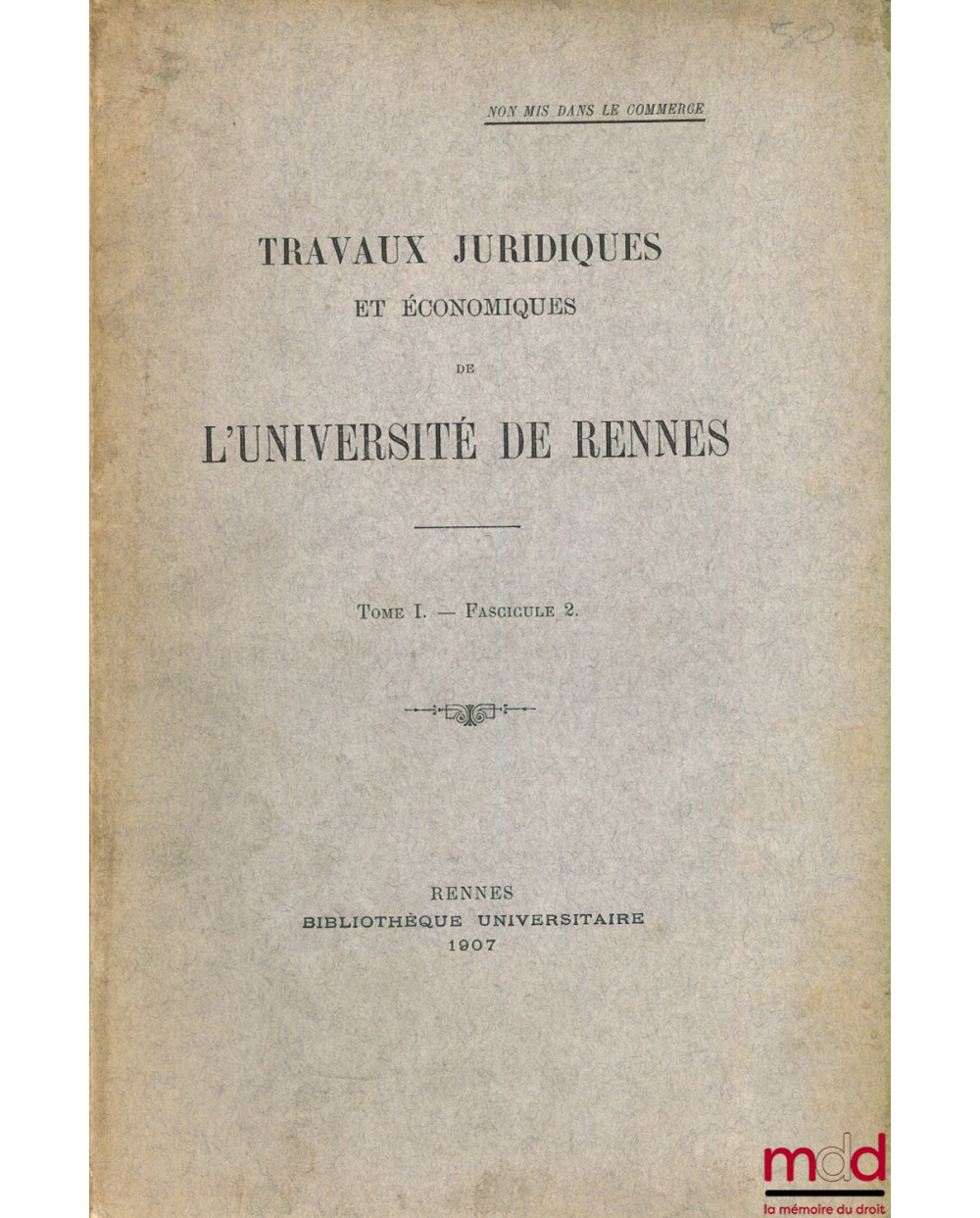 TRAVAUX JURIDIQUES ET ÉCONOMIQUES DE L’UNIVERSITÉ DE RENNES (hors commerce), tome 1, fasc. 2