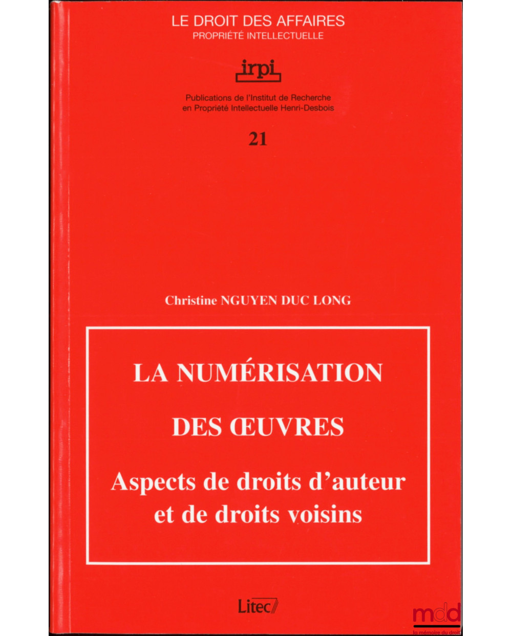 LA NUMÉRISATION DES ŒUVRES, Aspects de droits d’auteur et de droits voisins, Publications de l’Institut de Recherche en Propriété Intellectuelle Henri Desbois, coll. Le droit des affaires Propriété intellectuelle, n° 21