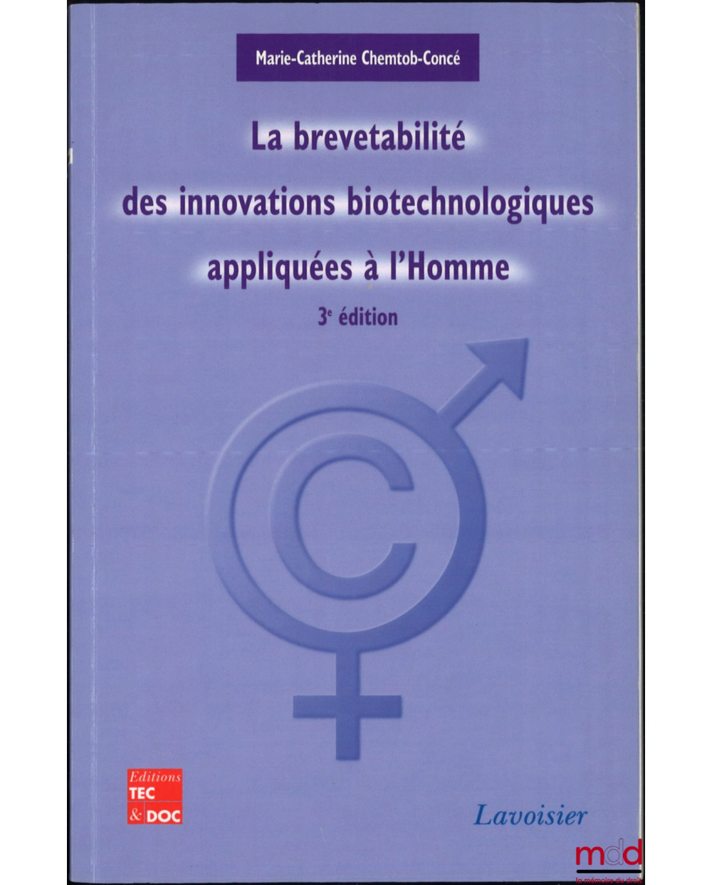 LA BREVETABILITÉ DES INNOVATIONS BIOTECHNOLOGIQUES APPLIQUÉES À L’HOMME, 3e éd.