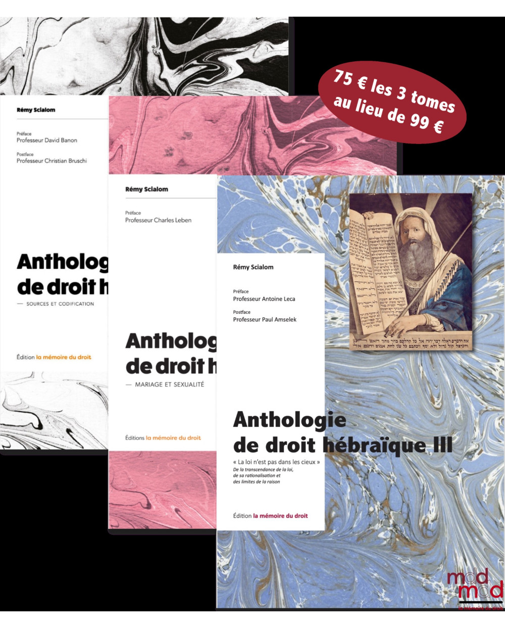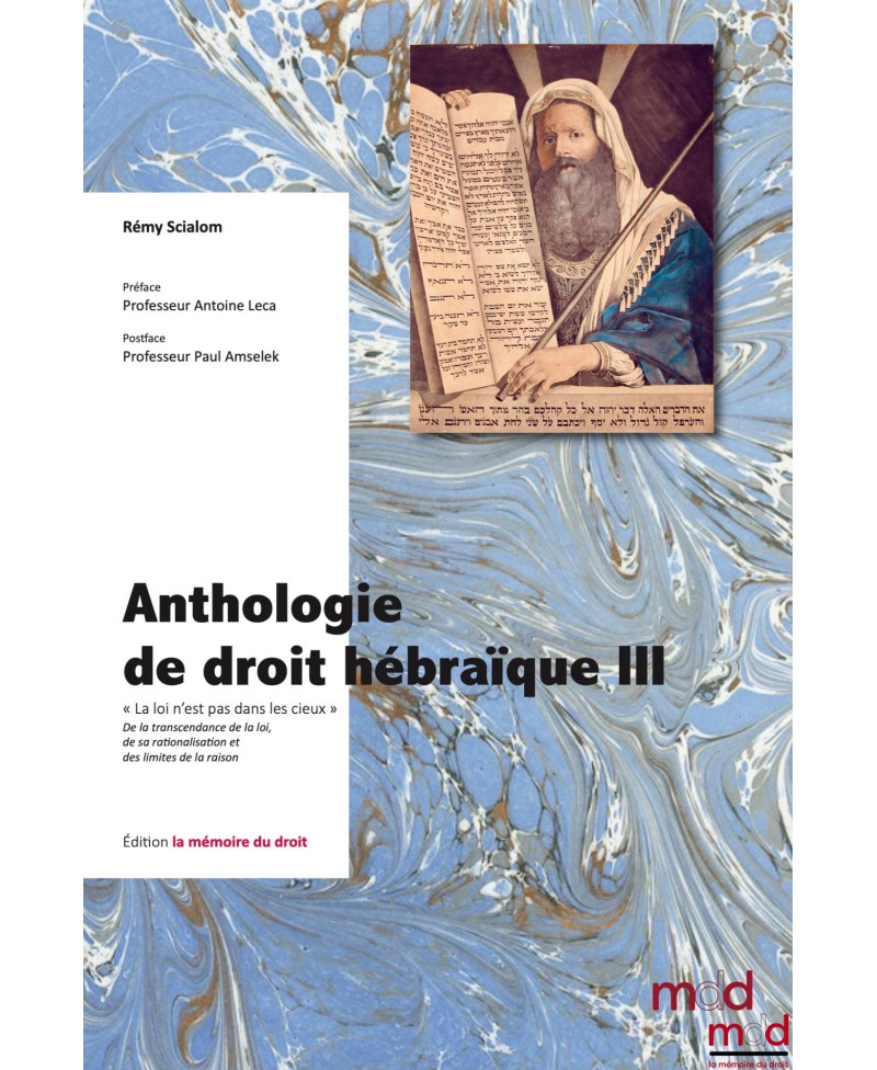 ANTHOLOGIE DE DROIT HÉBRAÏQUE, tome I, II et IIIt. I : Sources & Codification, Préface de David BANON, Postface de Christian BRUSCHIt. II : Mariage & sexualité, Préface de Charles LEBENt. III : « La loi n’est pas dans les cieux », De la transcendance de la loi, de sa rationalisation et des limites de la raison, Préface de Antoine LECA, Postface de de Paul AMSELEK