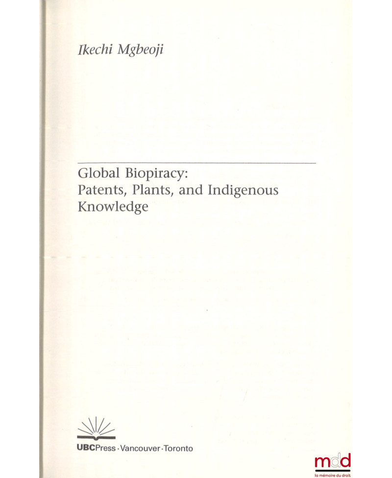 GLOBAL BIOPIRACY : Patents, Plants, and Indigenous Knowledge