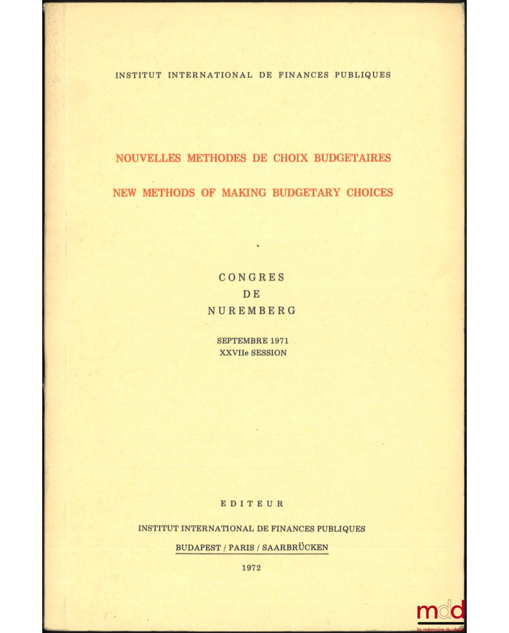 NOUVELLES MÉTHODES DE CHOIX BUDGÉTAIRES, NEW METHODS OF MAKING BUDGETARY CHOICES, Congrès de Nuremberg, Septembre 1971, XXVIIe session