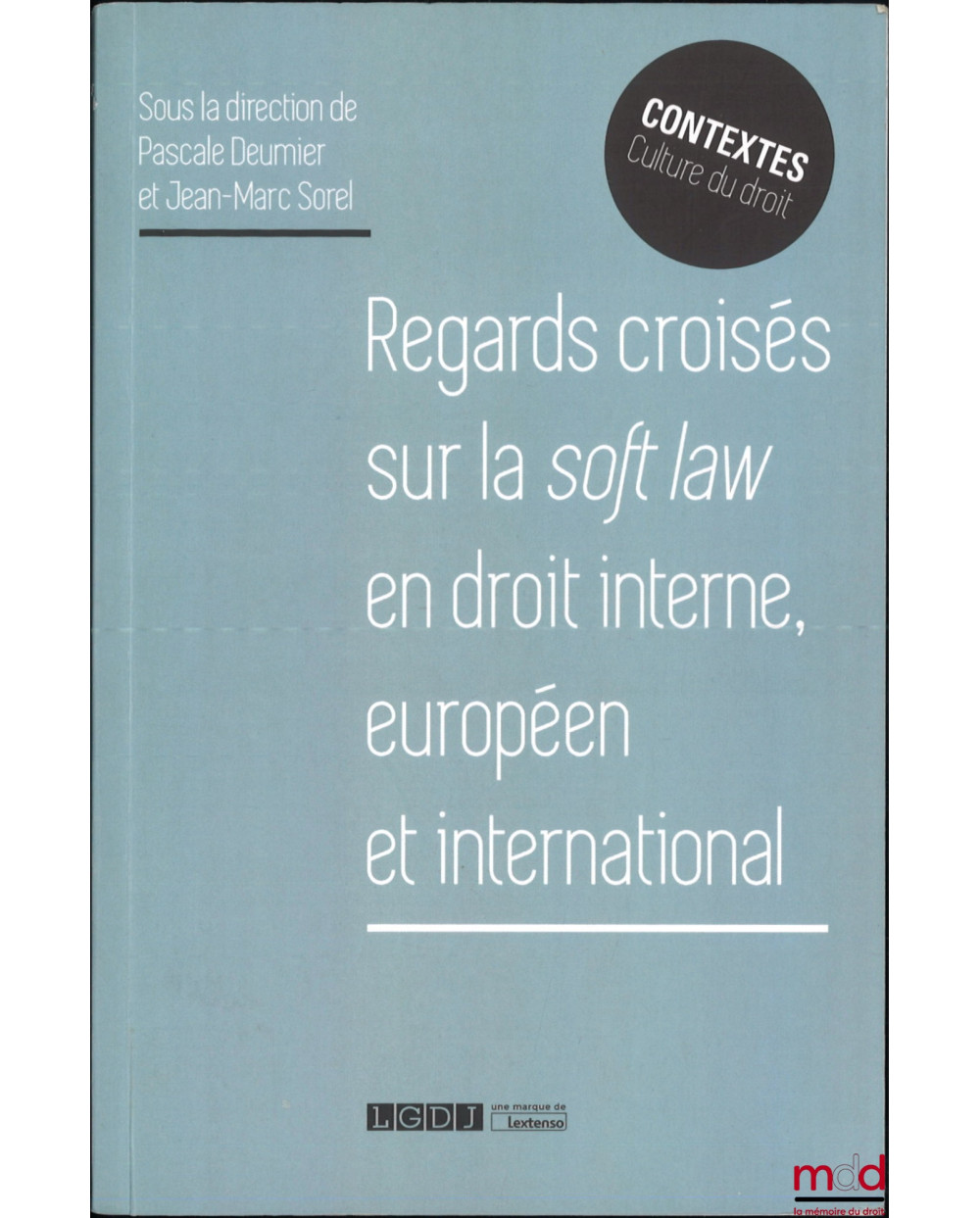 REGARDS CROISÉS SUR LA SOFT LAW EN DROIT INTERNE, EUROPÉEN ET INTERNATIONAL, dir. Pascale Deumier et Jean-Marc Sorel, coll. Contextes. Culture du droit