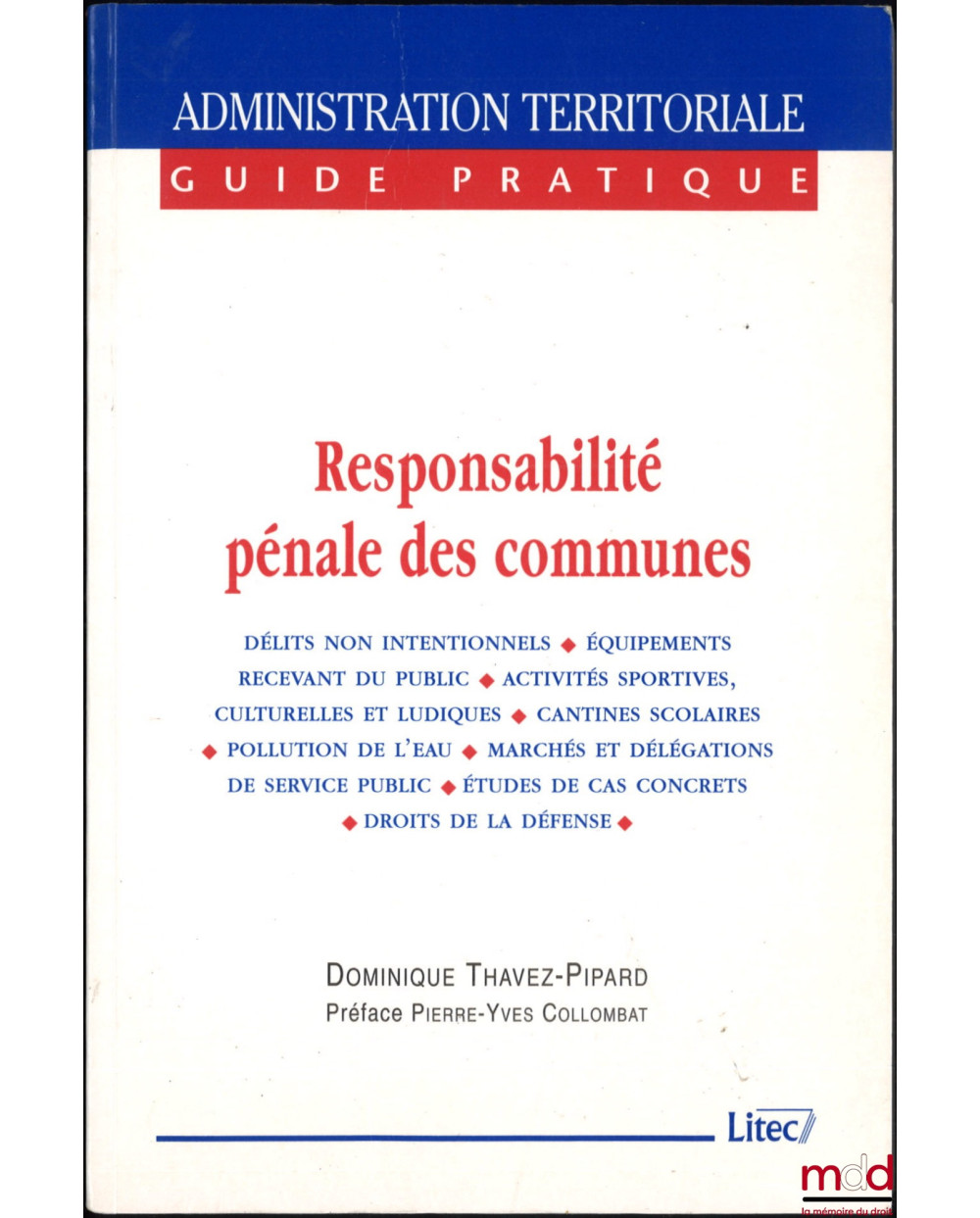 RESPONSABILITÉ PÉNALE DES COMMUNES, Préface Pierre-Yves Collombat, coll. Guide pratique de l’Administration territoriale