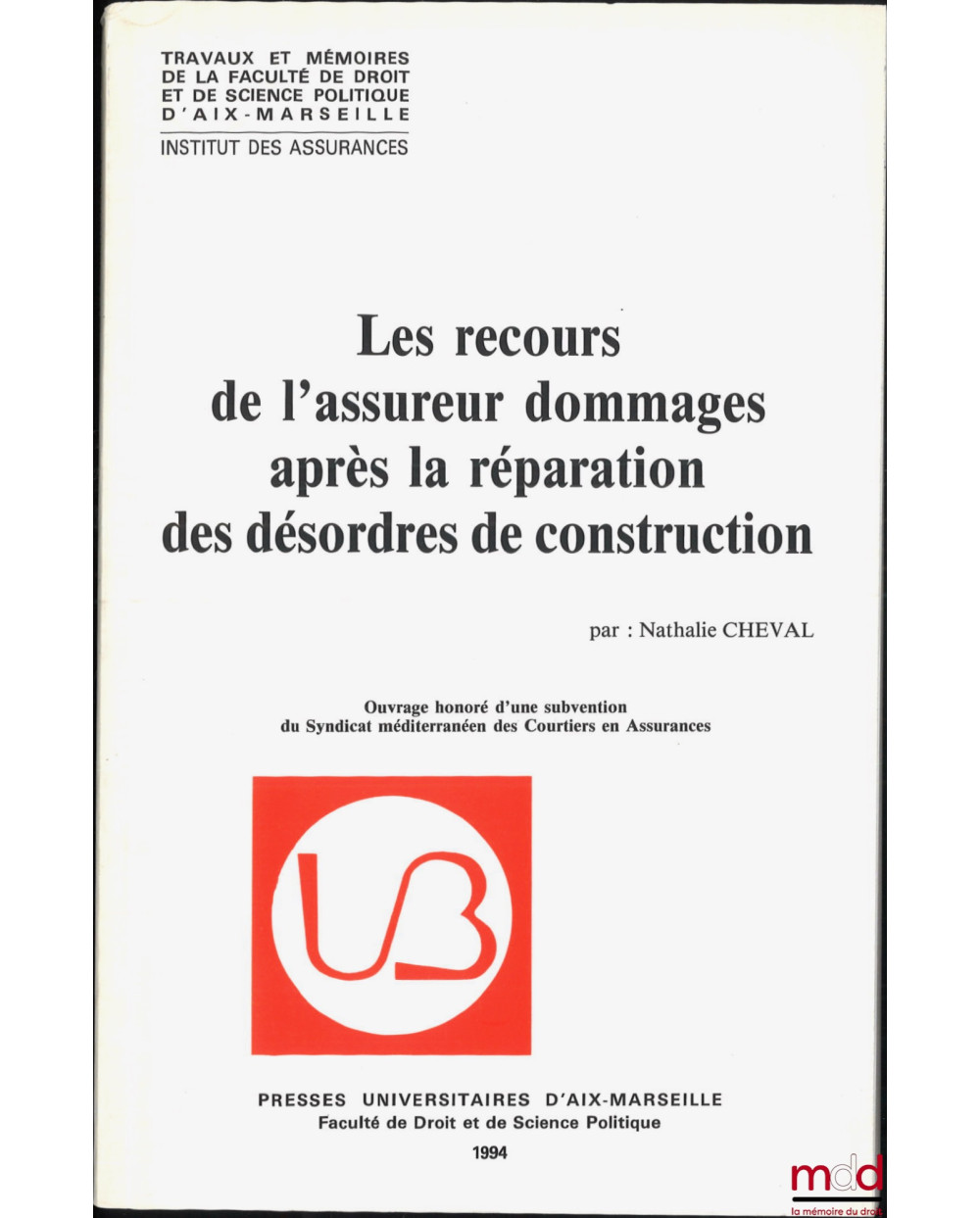 LES RECOURS DE L’ASSUREUR DOMMAGES APRÈS LA RÉPARATION DES DÉSORDRES DE CONSTRUCTION, Travaux et mémoires de la faculté de droit et de science politique d’Aix-Marseille