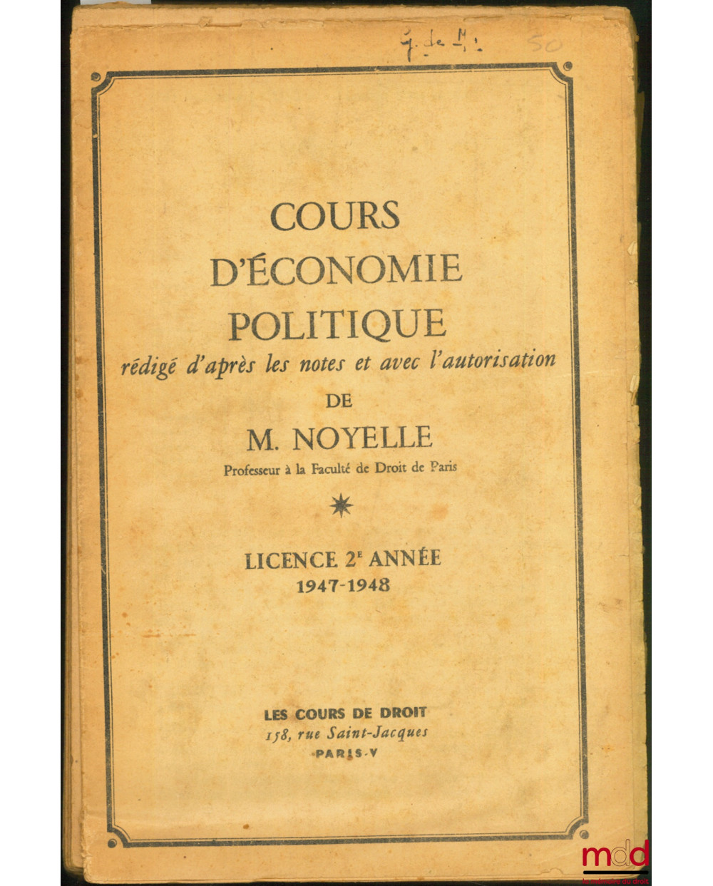 COURS D’ÉCONOMIE POLITIQUE, licence 2e année 1947-1948 [mq. les 50 dernières pages]