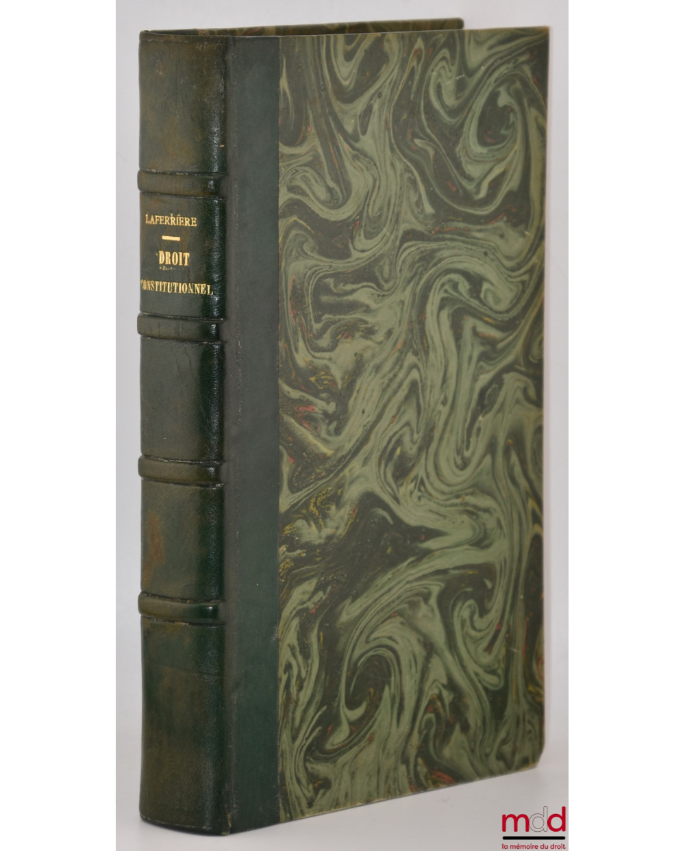 Cours dans lequel J. Laferrière aborde successivement les chapitres suivants : Le développement constitutionnel de la France de 1789 à 1875 ; Les principes généraux du droit constitutionnel, qui servent à la base de la Constitution de 1875 ; L’organisation des pouvoirs publics d’après cette Constitution.
