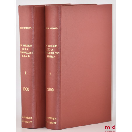 - 2 vol. in-8, pleine toile enduite grenat, tit. & tom. dorés sur dos lisses, non massicoté, couv. cons., Ex-libris tamponné et manuscrit, ENVOI DE L’AUTEUR AU PROFESSEUR LOUIS DUGUIT, (qq. annotations à l’encre et au crayon), très bon état, [ce livre provient de la bibliothèque personnelle de Léon DUGUIT], IV-484 / 548 p.