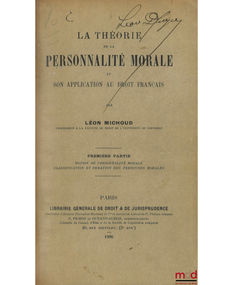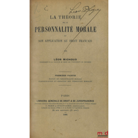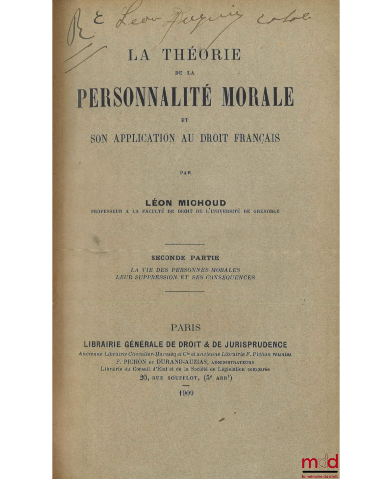 La notoriété de ce texte n’est plus à défendre. Notons cependant les propos de Jean-Louis Halpérin : « Reprenant les critiques de Gierke contre la théorie de la fiction, il défend la réalité des personnes morales et l’utilité de cette notion juridique, notamment contre la thèse de Duguit, qu’il qualifie de “proprement anarchique”. Michoud refuse néanmoins de se rallier à l’organicisme ou aux conceptions institutionnelles de Hauriou : il se place, sous l’influence de Jellinek, dans le camp des partisans de la réalité des personnes morales dans “le monde juridique” distingué du monde physique. De même il emprunte à Jhering l’idée d’intérêt protégé pour fonder les droit subjectifs sans éliminer totalement la volonté. Il limite le droit de l’État de définir les intérêts protégés par une profession de foi jusnaturaliste séparant l’idée de droit de l’action de l’État. » (Dictionnaire historique des juriste français, p. 565).