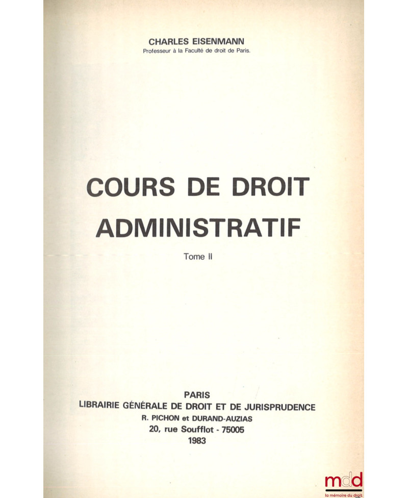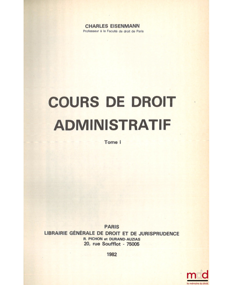 Rarissime exemplaire des cours de doctorat de Charles Eisenmann, sous la conduite de S. Rials, rapidement épuisés quelques années après leurs publications, témoignant ainsi de la vitalité de la pensée de l’auteur.