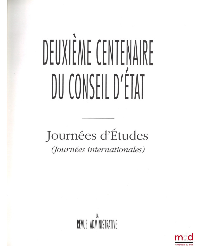 DEUXIÈME CENTENAIRE DU CONSEIL D’ÉTAT– Journées d’Études (Journées nationales), La Revue administrative– Journées d’Études (Journées internationales), La Revue administrativeAvant-propos de Renaud Denoix de Saint Marc