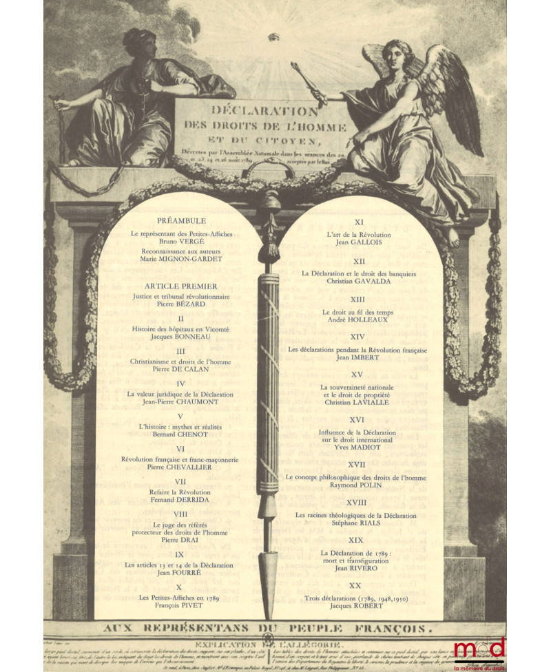 Édité à l’occasion de la célébration du Bicentenaire de la Révolution française, ce numéro contient 20 courts exposés sur ce que représente la Déclaration de 1789, tant dans ses origines que dans son contenu ou ses résonances. On y trouve notamment : Pierre Bézard, Justice et tribunal révolutionnaire ; Jean-Pierre Chaumont, La valeur juridique de la Déclaration ; Pierre Chevallier, Révolution française et franc-maçonnerie ; Fernand Derrida, Refaire la Révolution ; Jean Gallois, L’art de la Révolution ; Christian Gavalda, La Déclaration et le droit des banquiers ; Stéphane Rials, Les racines théologiques de la Déclaration ; Jean Rivero, La Déclaration de 1789 : mort et transfiguration.