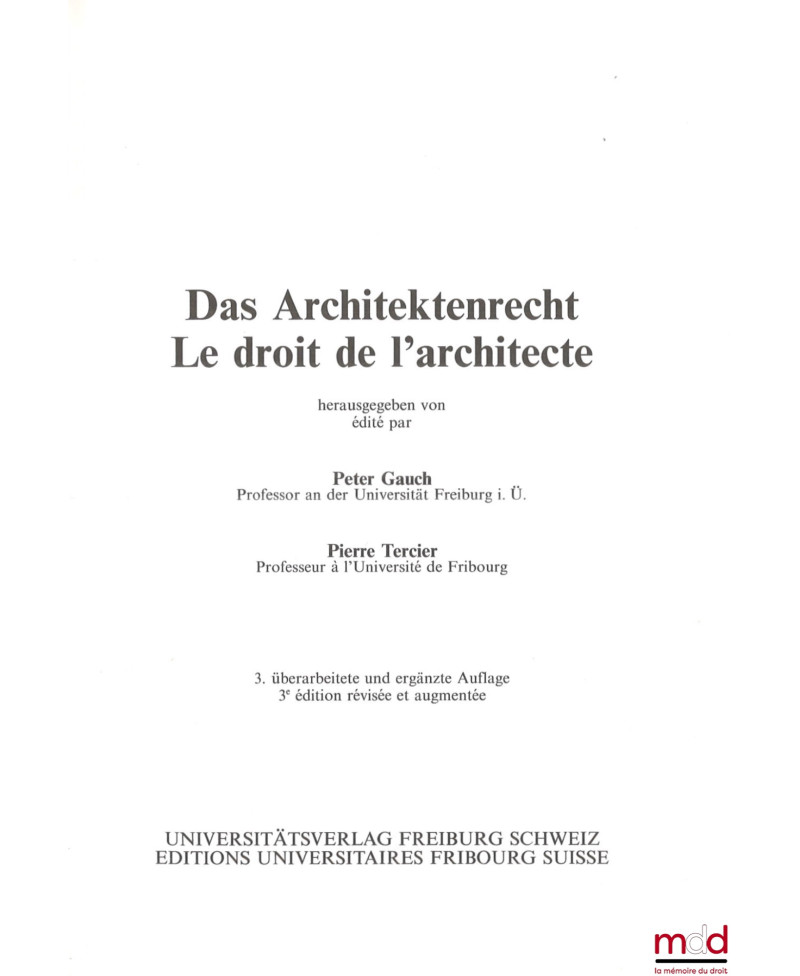 LE DROIT DE L’ARCHITECTE, 3e éd. revue et augmentée