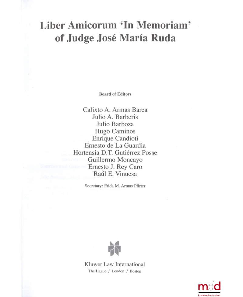 LIBER AMICORUM « IN MEMORIAM » OF JUDGE JOSÉ MARÍA RUDA