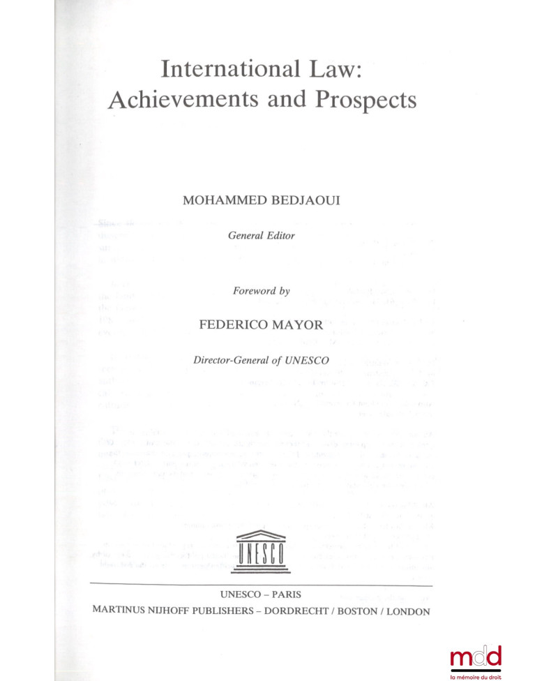 INTERNATIONAL LAW : ACHIEVEMENTS AND PROSPECTS, Foreword by Federico Mayor