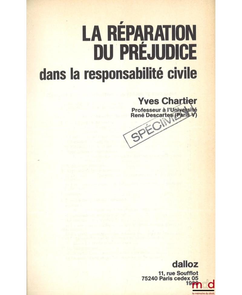LA RÉPARATION DU PRÉJUDICE Dans la responsabilité civile