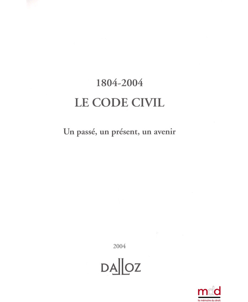 1804-2004 LE CODE CIVIL, UN PASSÉ, UN PRÉSENT, UN AVENIR, Université Panthéon-Assas (Paris II)