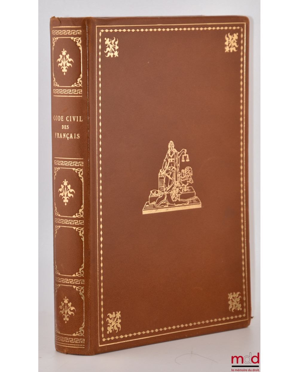 - in-8, plein veau caramel, tit. doré sur dos lisse orné de fers, frises et filets encadrants dorés, plat. sup. orné de filets encadrant, et décors au fer doré représentant une allégorie de la justice, Ex-Libris manuscrit « Maître Claude Chambaz », (très légères épidermures), excellent état, 579 p.