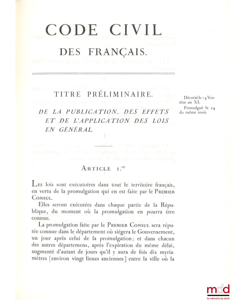 CODE CIVIL DES FRANÇAIS. ÉDITION ORIGINALE ET SEULE OFFICIELLE, Réimpression par la Caisse des Dépôts et Consignations