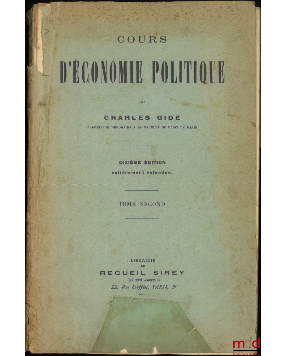 COURS D’ÉCONOMIE POLITIQUE, 10e éd. entièrement refondue, [t. II uniquement]