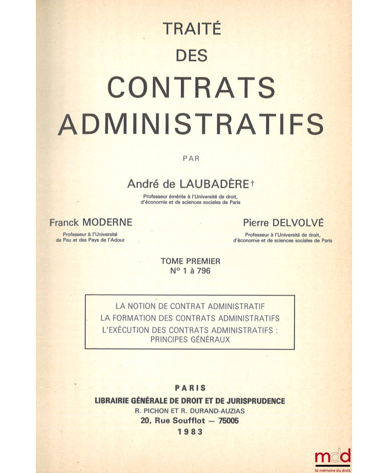LAUBADÈRE (André de), MODERNE (Franck) et DELVOLVÉ (Pierre)