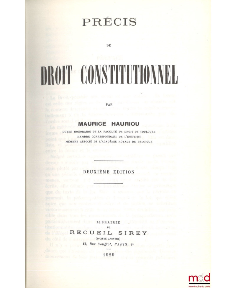 PRÉCIS DE DROIT CONSTITUTIONNEL, 2e éd., [réimpression]