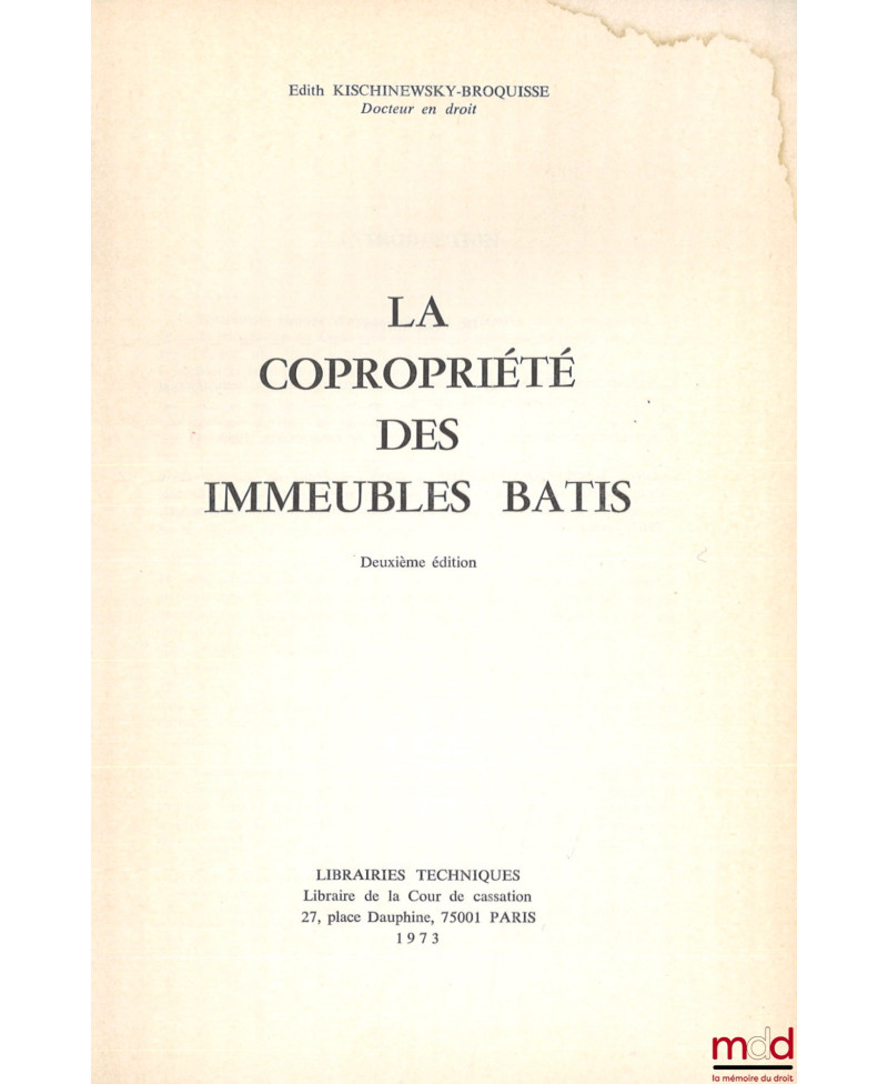 LA COPROPRIÉTÉ DES IMMEUBLES BÂTIS, 2e éd., [Avec] Addendum et Mise à jour