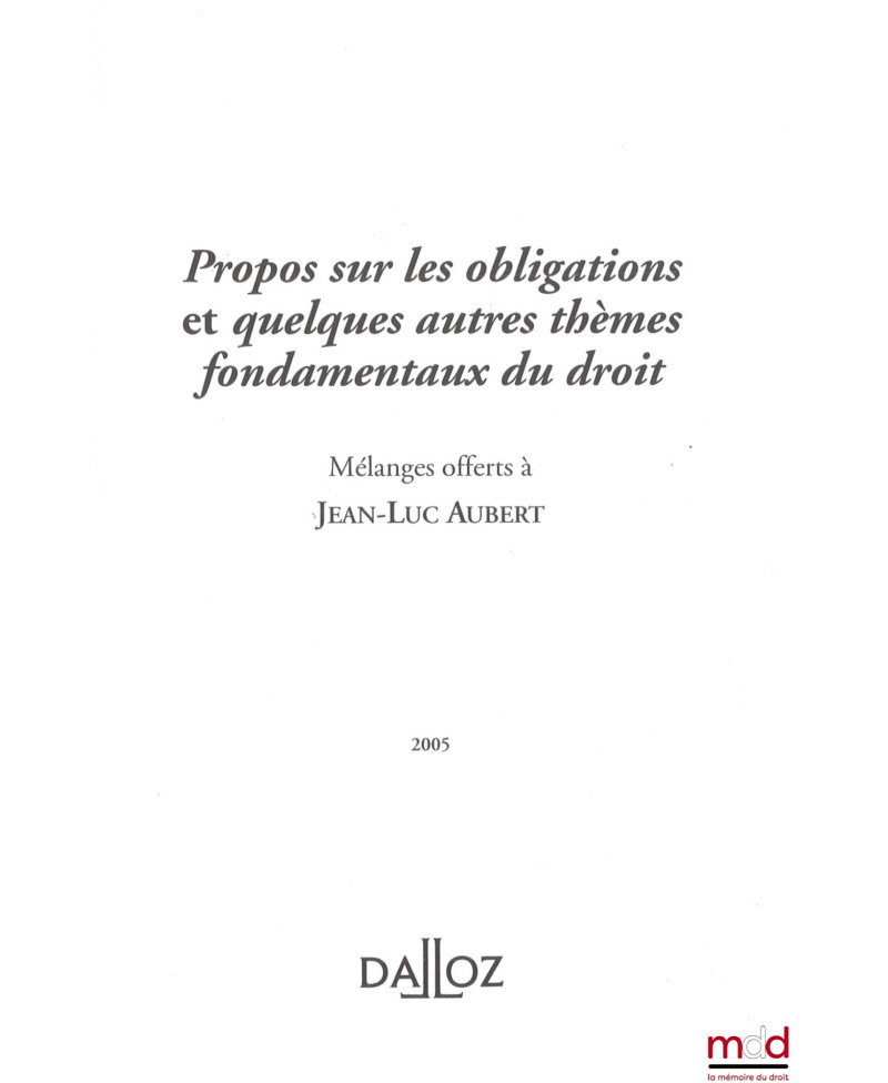 PROPOS SUR LES OBLIGATIONS ET QUELQUES AUTRES THÈMES FONDAMENTAUX DU DROIT, Mélanges offerts à Jean-Luc AUBERT