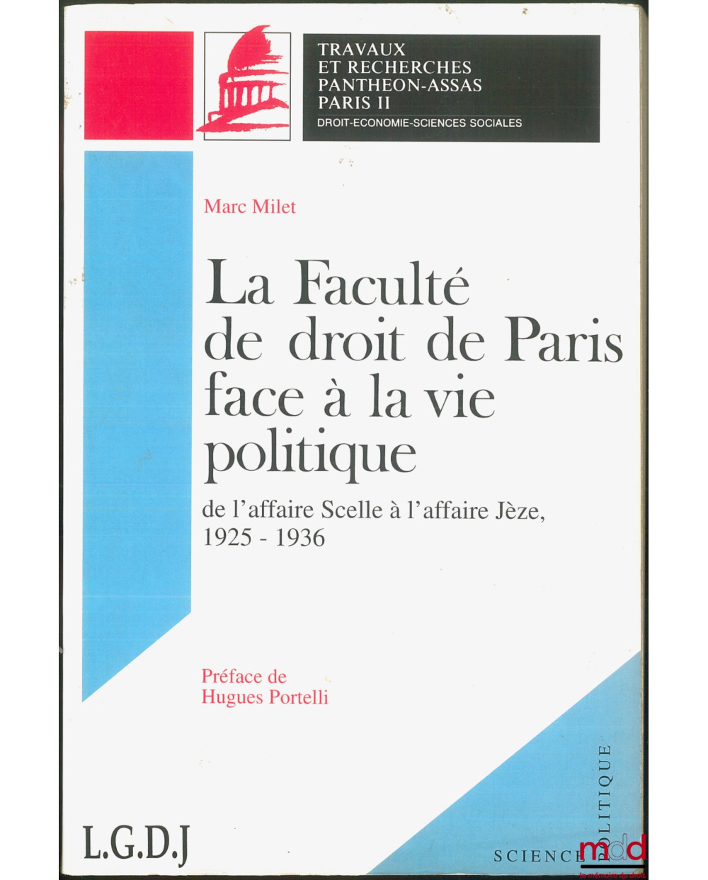 LA FACULTÉ DE DROIT DE PARIS FACE À LA VIE POLITIQUE, De l’affaire Scelle à l’affaire Jèze, 1925-1936, Préface de Hugues Portelli, coll. Travaux et Recherches Pantheon-Assas Paris II
