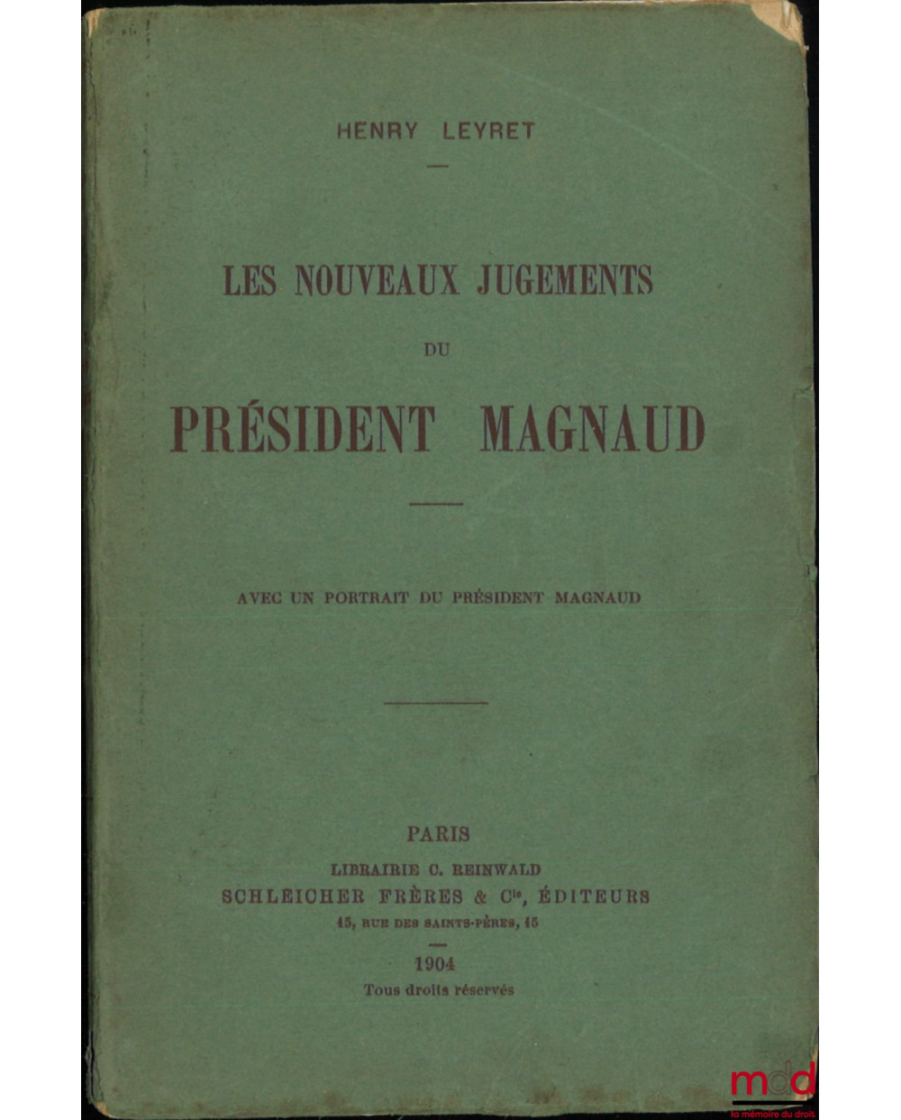 - in-8, br., non massicoté, portrait du président Magnaud en frontispice, (lég. fané), int. frais, 246 p.