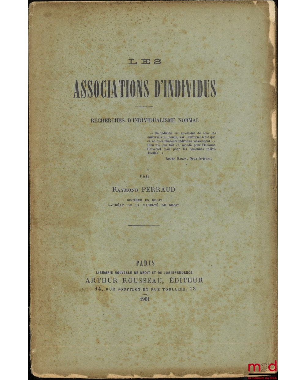 LES ASSOCIATIONS D’INDIVIDUS, Recherches d’individualisme normal