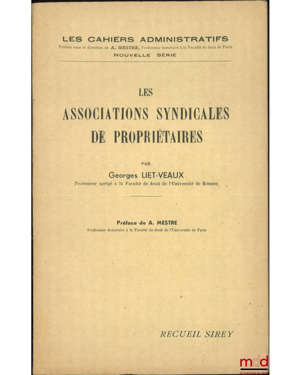 LES ASSOCIATIONS SYNDICALES DE PROPRIÉTAIRES, Les Cahiers Administratifs, nouvelle série, Préface de Achille Mestre