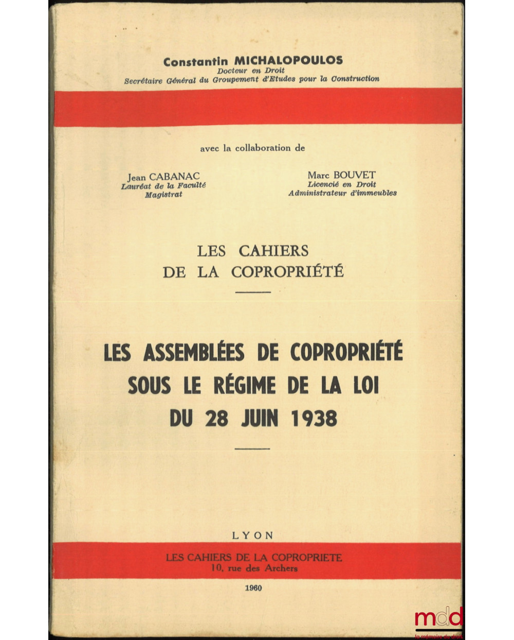 LES ASSEMBLÉES DE COPROPRIÉTÉ SOUS LE RÉGIME DE LA LOI DU 28 JUIN 1938, Les cahiers de la copropriété