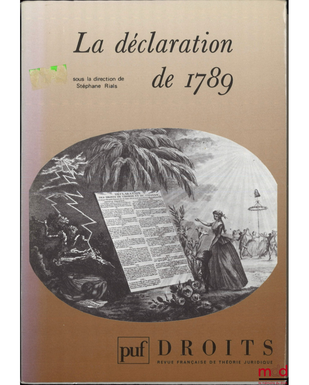 LA DÉCLARATION DE 1789, sous la direction de Stéphane Rials, revue Droits, n° 8
